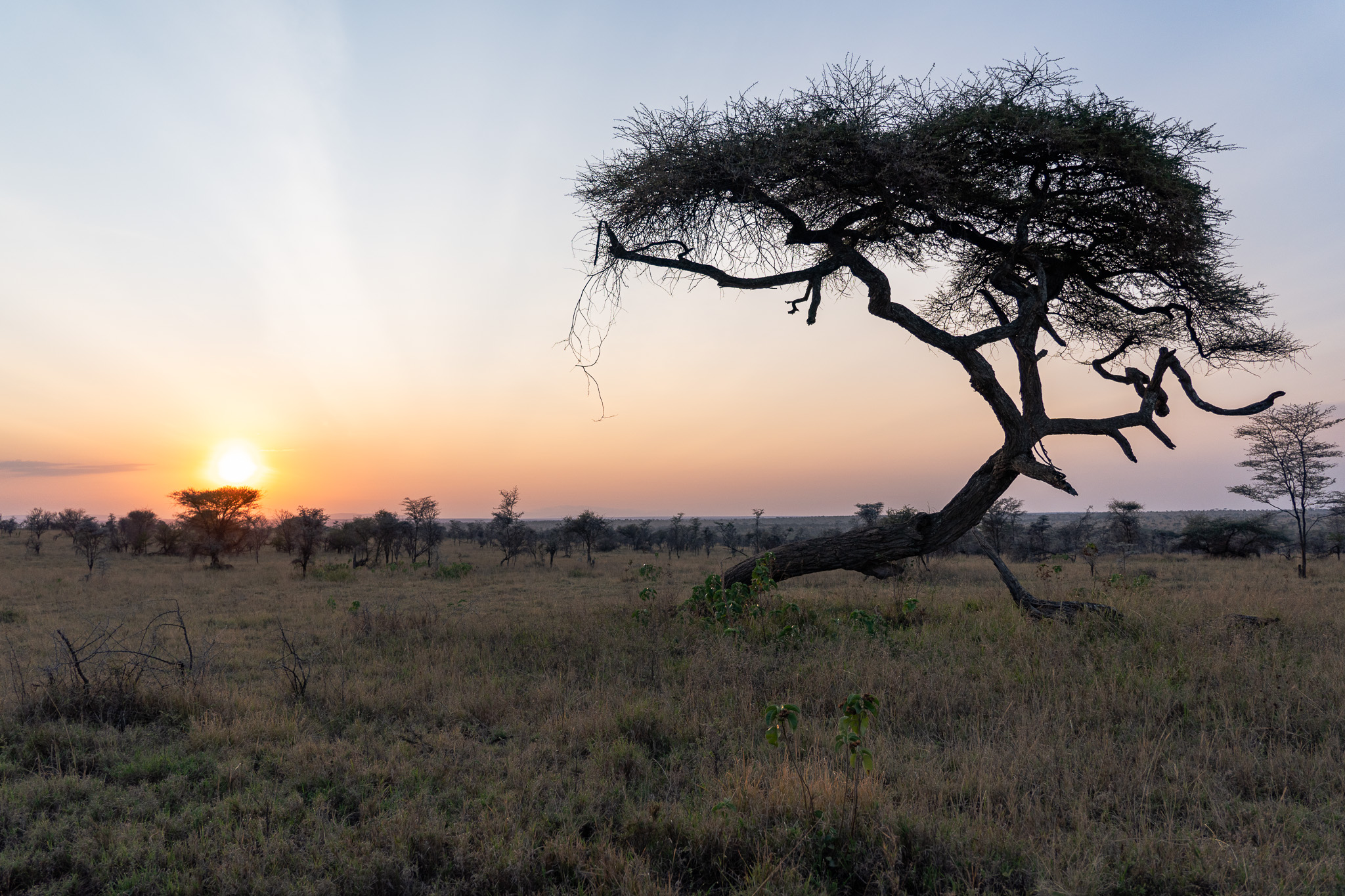 Zum Sonnenuntergang taucht goldenes Licht die Savanne in eine besondere Stimmung. Ein perfekter Moment, um diesen Safari-Tag mitten in der Serengeti ausklingen zu lassen.